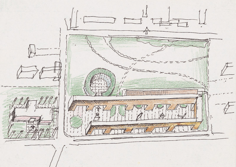 of buildings. The axis of the town hall's colonnade thus structures the